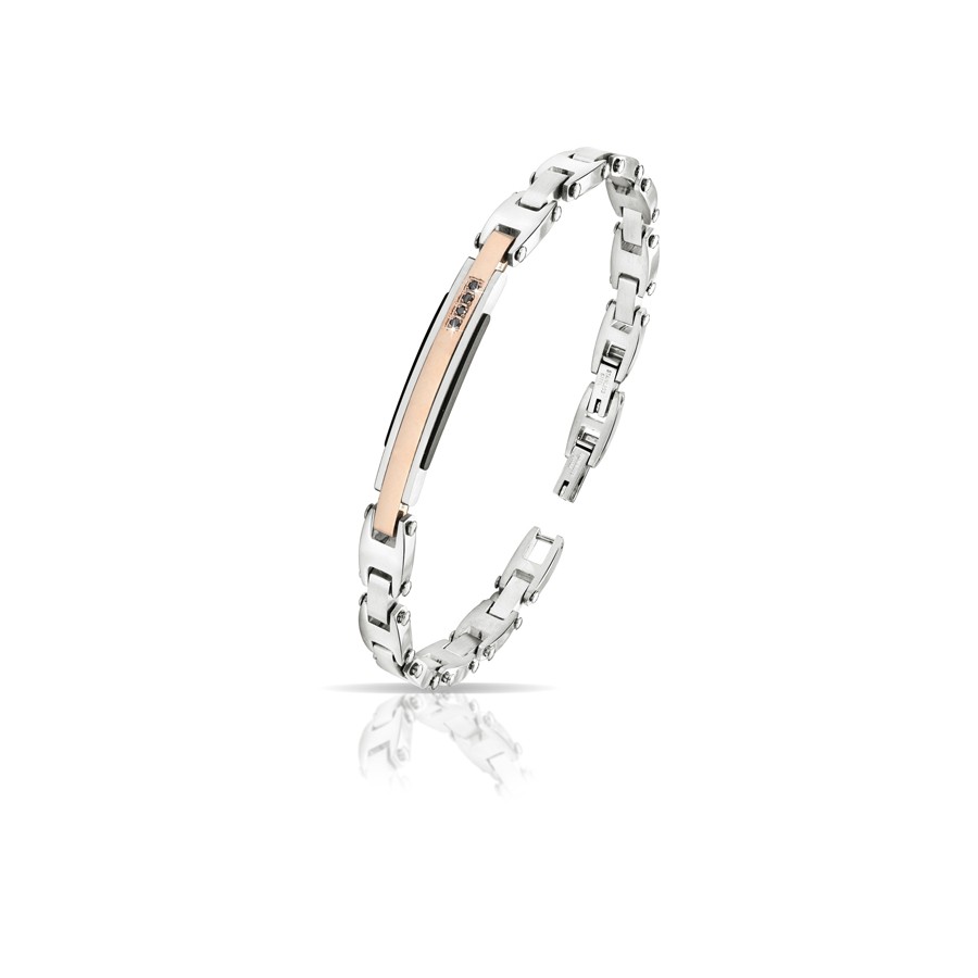 BRACCIALE ARKANO IN ACCIAIO E IP ROSA CON CT.0,07 DIAMANTI NERI ABA013NR