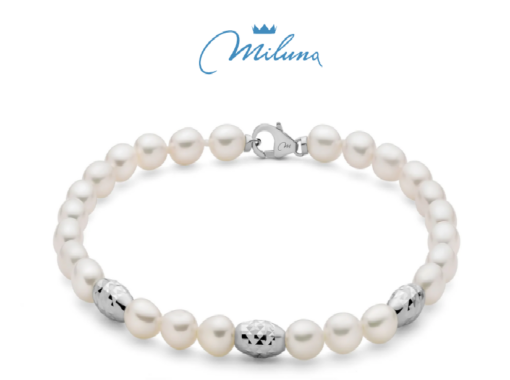 “Scopri l’eleganza senza tempo del bracciale di perle d’Oriente della Miluna, realizzato con perle di dimensioni 5-5,5 mm. Questo raffinato accessorio è arricchito da cinque inserti in argento, che aggiungono un tocco di luminosità e stile. Ogni perla è selezionata con cura per garantire una qualità eccezionale, mentre gli inserti in argento creano un affascinante contrasto, rendendo il bracciale perfetto per ogni occasione, dal quotidiano a eventi speciali. Indossa questo bracciale e lasciati avvolgere dalla sua bellezza unica e dal suo fascino intramontabile!”