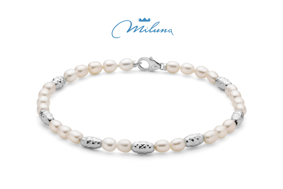 “Scopri l’eleganza senza tempo del bracciale di perle d’Oriente della Miluna, realizzato con perle di dimensioni 4-4,5 mm. Questo raffinato accessorio è arricchito da cinque inserti in argento, che aggiungono un tocco di luminosità e stile. Ogni perla è selezionata con cura per garantire una qualità eccezionale, mentre gli inserti in argento creano un affascinante contrasto, rendendo il bracciale perfetto per ogni occasione, dal quotidiano a eventi speciali. Indossa questo bracciale e lasciati avvolgere dalla sua bellezza unica e dal suo fascino intramontabile!”
