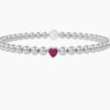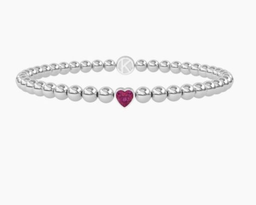 Descrizione: bracciale elastico a sfere in acciaio 316L e cuore centrale in tormalina rosa sintetica e nel retro cristalli in pavè