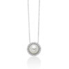 Collana in oro 750/1000, il che significa che è composta per il 75% da oro puro. Ha 20 diamanti naturali con un peso totale di 11,2 carati, classificati come G (colore) e Pur.SI (purezza), il che indica che sono di alta qualità. Inoltre, ci sono 1 perla vera Akoya di alta selezione, di colore bianco e con un diametro di 7-7,5 mm.