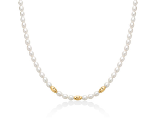 Questa delicata collana in argento 925/1000 è adornata con perle vere a forma di riso di colore bianco, con un diametro di 5-5,5 mm.