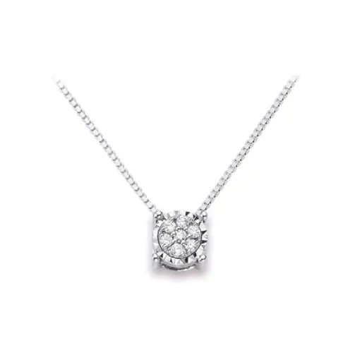 Collana punto luce a griffe 4 punte con diamanti taglio brillante ct. 0,06 colore g purezza si, realizzato in oro bianco titolo 750/°°, lunghezza collana 42 cm. Oro Bianco 750/°°, Diamanti.