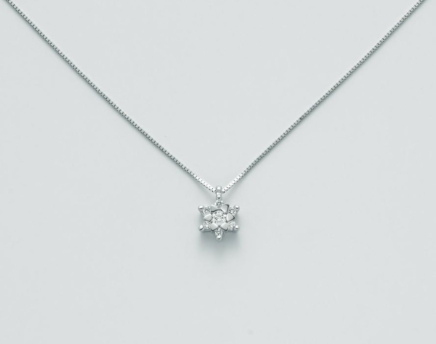Oro 750/1000 Nr. 7 Diamanti Pt. tot. 11 Col. G Pur SI Taglio Brillante Rotondo, Microfusione Griffes. Collana consegnata con scatola originale e garanzia ufficiale.
