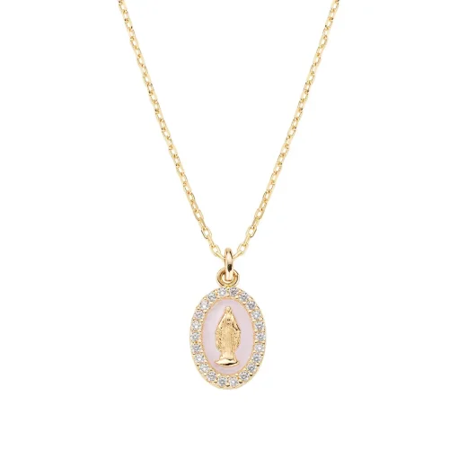 Collana mini Medaglia Miracolosa smaltata Rosa Perla Amen