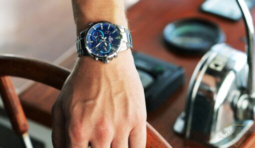 Le celle solari alimentano l’orologio in modo autonomo ed ecologico. L’energia solare in eccesso viene salvata in una batteria.