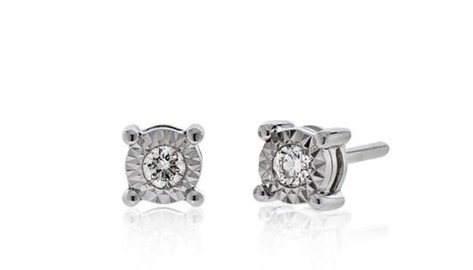 orecchini punto luce a griffe 4 punte con diamante taglio brillante ct. 0,02 colore g purezza vs, incassato su dischetto diamantato, realizzato in oro bianco titolo 750/°°, Diamanti, Oro Bianco 750/°°,