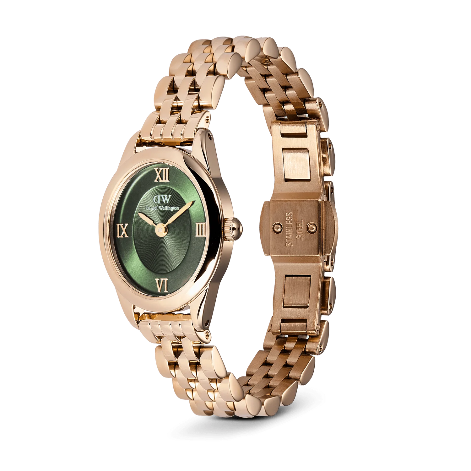 Scopri l’eleganza senza tempo di questo orologio in Rose Gold, realizzato in robusto acciaio inossidabile 316L con una raffinata placcatura PVD. Con uno spessore della cassa di soli 6 mm e un quadrante verde che cattura l’attenzione, questo orologio è perfetto per ogni occasione. Il meccanismo giapponese al quarzo garantisce precisione e affidabilità, mentre il cinturino a 5 maglie in Rose Gold offre comfort e stile. Con una larghezza di 10 mm, il cinturino è anche intercambiabile. Resistente all’acqua fino a 3ATM.