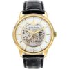 La cassa in acciaio inox lucido color oro gold (diametro 43 mm, spessore 12,3 mm) dona un look sofisticato e contemporaneo. Il vetro zaffiro protegge il quadrante dai graffi, mentre il cinturino in vera pelle nera garantisce comfort e durata. Dotato di movimento automatico, l’orologio si ricarica con il movimento del polso, senza bisogno di batteria.