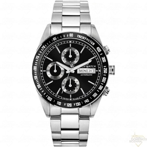 Orologio uomo Philip Watch Caribe R8243607001 cronografo con movimento automatico, bracciale in acciaio che racchiude una cassa di 41 mm con quadrante nero. La lunetta con scala tachimetrica, un dettaglio dal sapore sportivo, ne esalta il carattere. Lancette, indici stilizzati e contatori sono in argento, in contrasto con il colore del fondo, decisamente più dark. Sulla destra, un datario completo di giorno della settimana. Tutti gli elementi che servono per orientarsi anche nelle giornate più impegnative, quando il tempo ĆØ più prezioso che mai. Vetro zaffiro antiriflesso e una resistenza allāacqua garantita fino a 100 metri di profonditĆ .