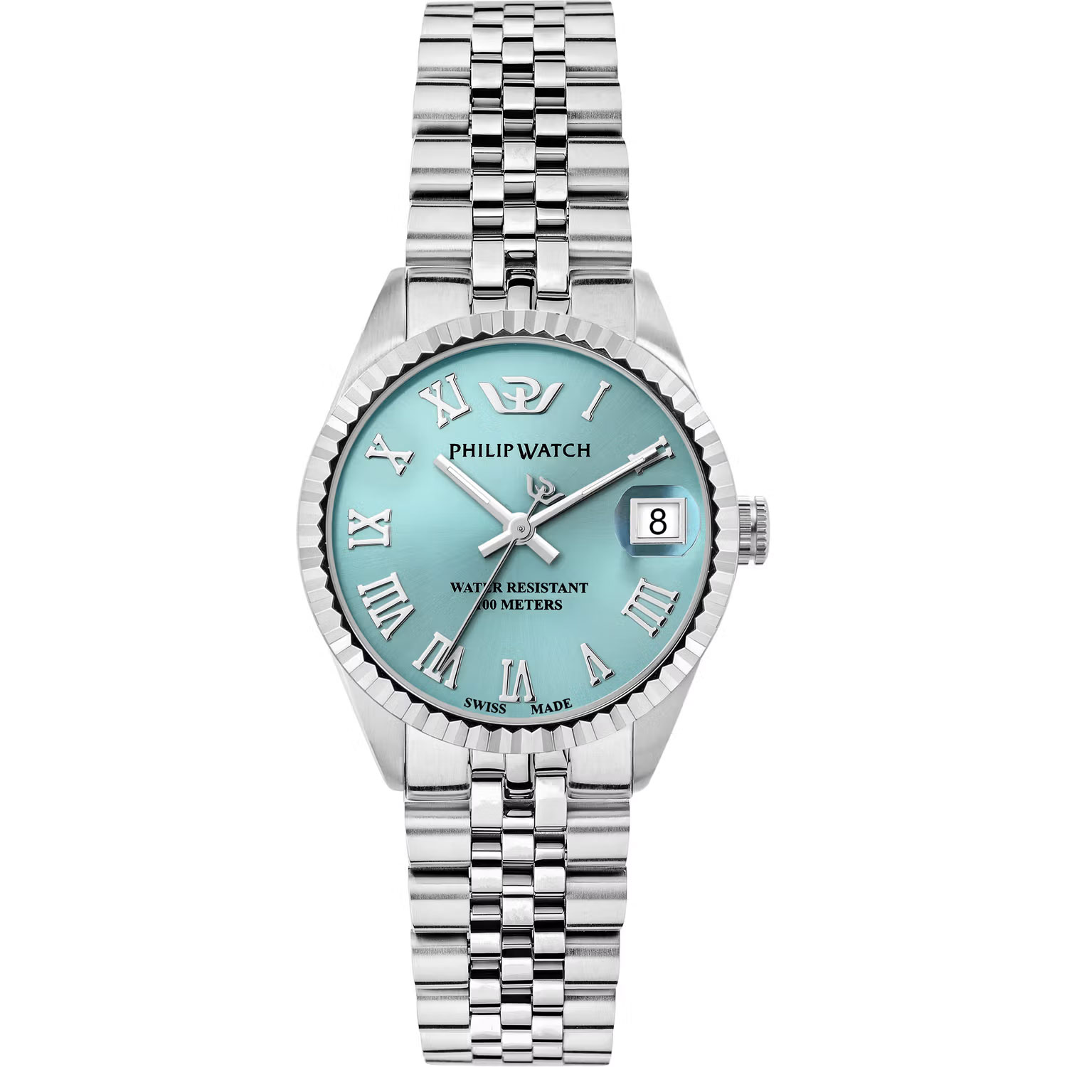 ROLOGIO PHILIP WATCH CARIBE – R8253597657 – Genere : Donna, Materiale e finitura cassa: Acciaio, Misura cassa: 31.00, Spessore cassa: 9.15, Finitura cassa: Lucido, Satinato, Colore cassa: Silver, Vetro: Vetro zaffiro, Trattamento antiriflesso, Materiale cinturino: Acciaio, Colore cinturino: Silver, Chiusura: Fibbia diver c, Pulsanti e blocco di sicurezza, Swiss made: Sì, Water resistant: 10 atm, Garanzia: Ufficiale 2 anni Philip Watch, Confezione: Originale Philip Watch