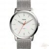 Orologio Uomo Fossil The Minimalist Fs5359 con cassa in acciaio inossidabile con finitura mista e di colore argento. Cassa di forma rotonda, della dimensione di 44 mm, con spessore di 8 mm. Il vetro ĆØ trasparente e il quadrante ĆØ di colore bianco. La ghiera ĆØ realizzata in acciaio inossidabile con finitura lucida e di colore argento. La distanza delle anse ĆØ di 22 mm. Bracciale con maglia mesh in acciaio inossidabile con finitura opaca di colore argento, e chiusura a scatto. Orologio con resistenza all’acqua di 5 atm