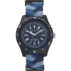 Orologio uomo Nautica Surfside NAPSRF004 con cassa in acciaio del diametro di 46 mm e quadrante di colore blu navy. Orologio con indici a forma di bandierine. Questo modello ha il cinturino in tessuto nato di colore blu camouflage. Orologio con resistenza all’acqua di 100 metri, datario, movimento a tre sfere.